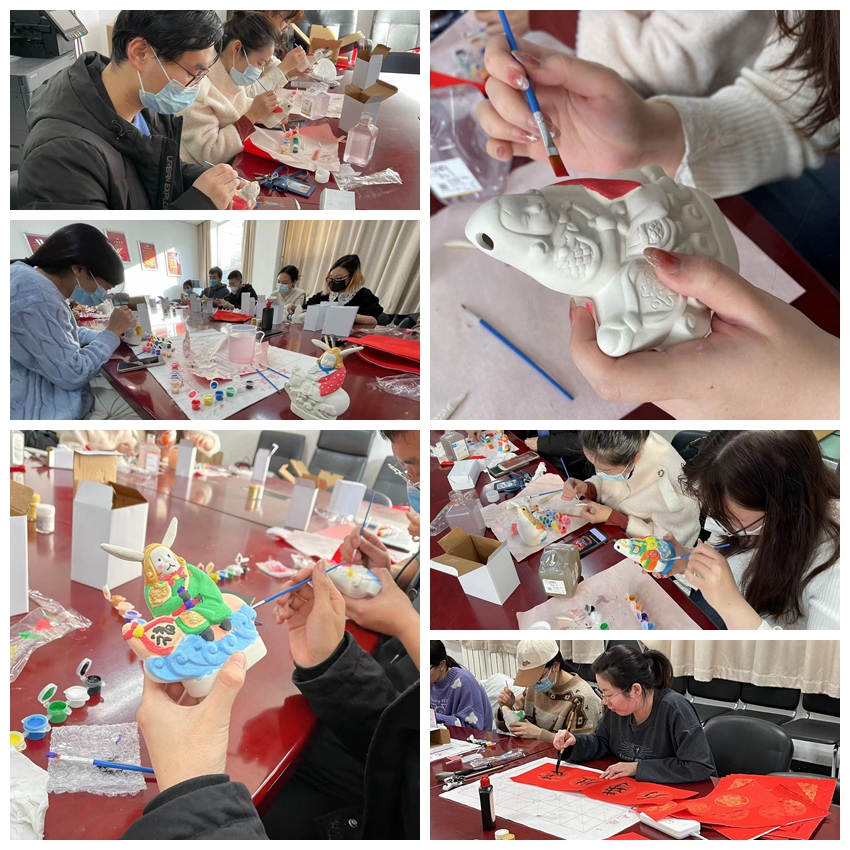 “兔爷儿”是最具代表性的北京非物质文化遗产之一,同学们体验亲手彩绘兔爷儿。一笔一划地勾勒,一张一弛地绘制,是一次奇妙的新春体验,更是一场与民俗文化的对话,同学们增进了对手工制作艺术品的兴趣,收获了亲手绘制的有温度又精美的艺术品,也加深了对民俗文化的认识。经过1个半小时的绘制,一尊尊造型相同,颜色各异的兔爷新鲜出炉,同学们相互分享着,开心喜悦的笑容洋溢在大家脸上,欢声笑语让整个活动现场热情而温暖。一张张福字,一幅幅对联,也都凝聚着学子们对对同学、对朋友、对家人、对老师同学们的新春祝福,寄语新的一年顺心顺意,福气多多,大家也激励着自己要在新的一年百尺竿头,更进一步。学院为留校学子精心准备的吉祥物,也为同学们带去了满满的祝福。